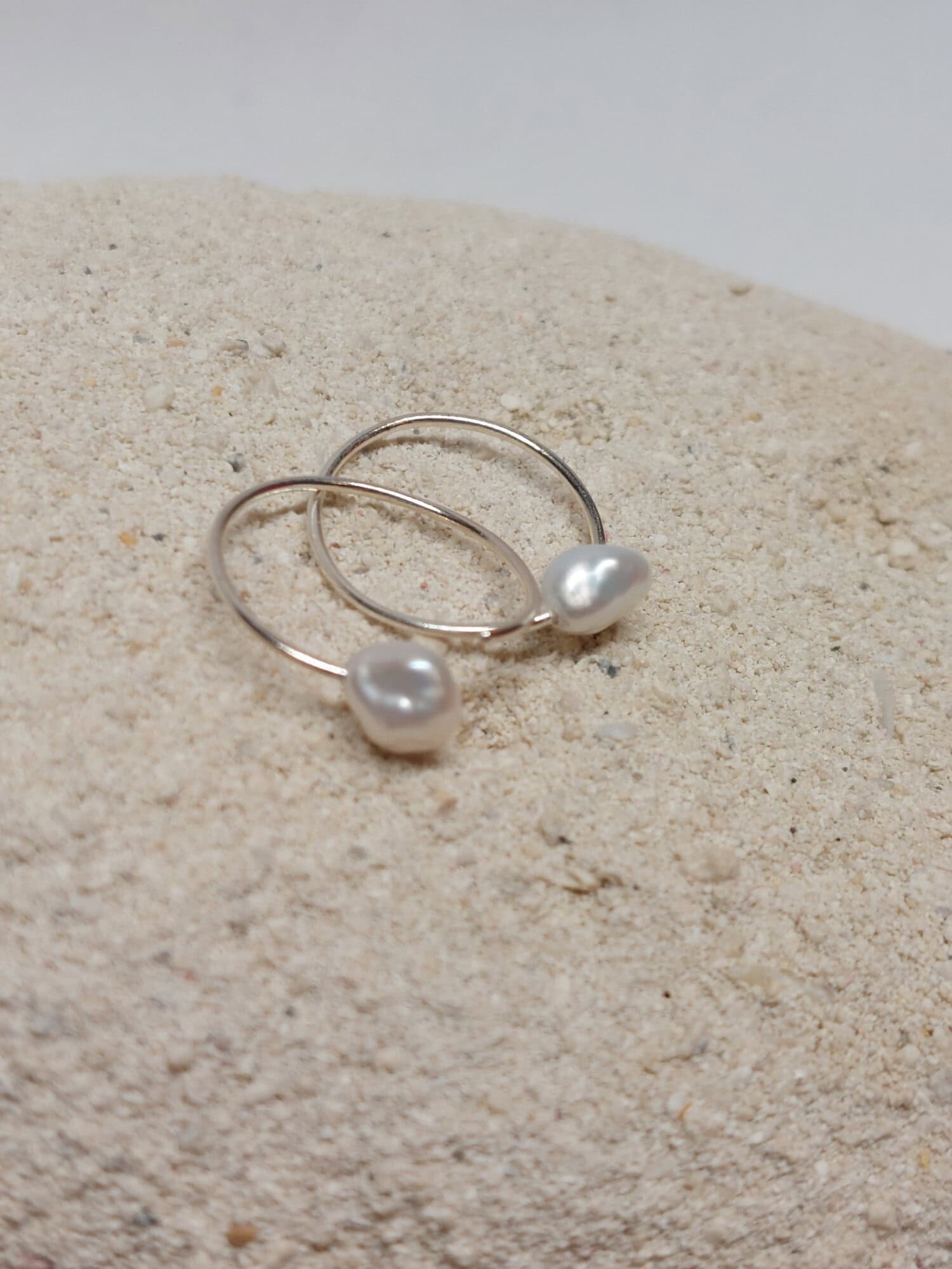 Anneaux de 18mm de diamètre, sont faits à partir d’un fil d’argent 925 et sertis de perles Keishi blanches de 5,5-6 mm.