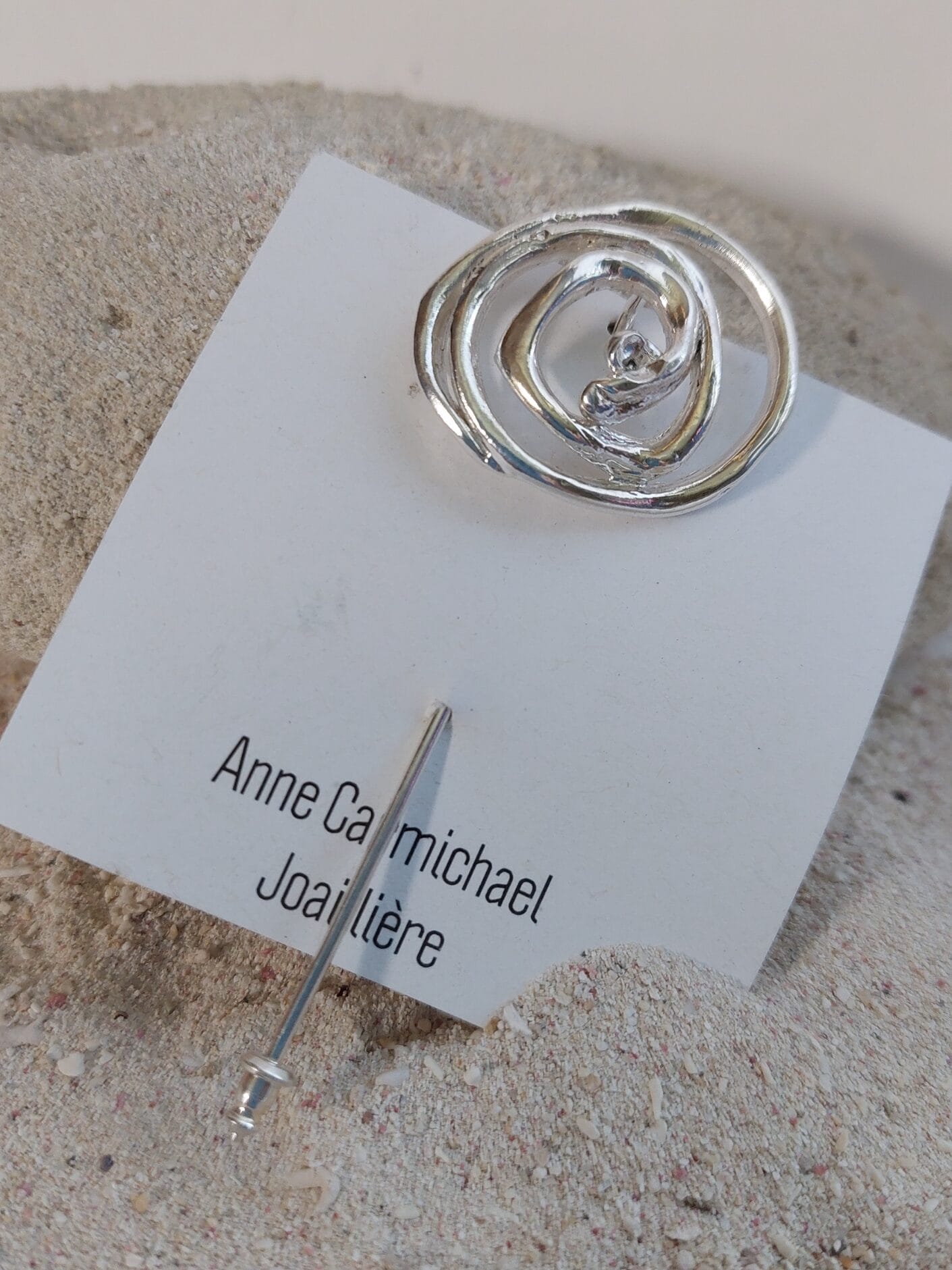Broche en argent 925, faite d’une longue tige se terminant par une spirale.