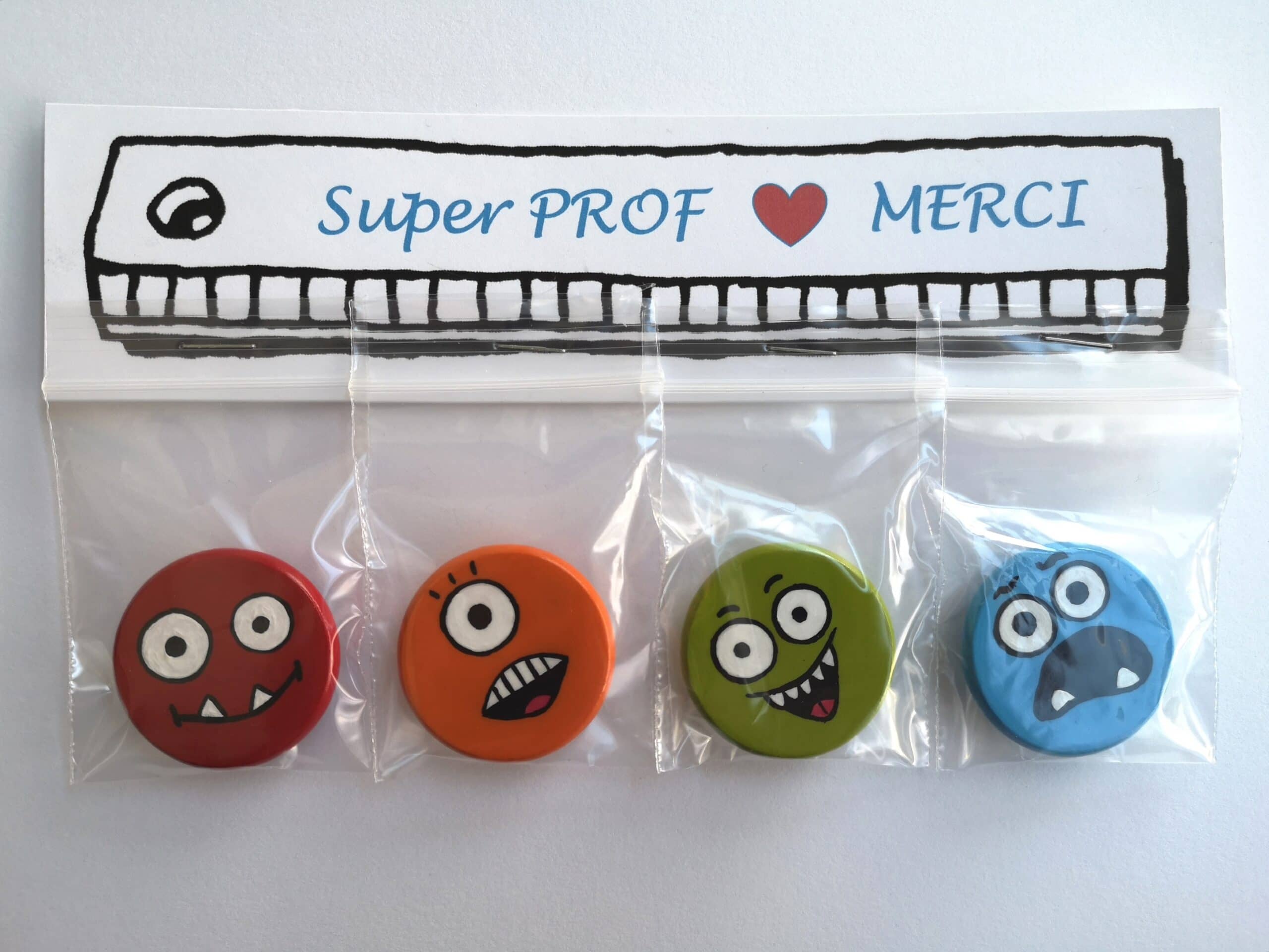 Étiquettes Acrylique, aimants, cadeau, éducatrice, émojis, enseignant, enseignante, monstres, peints à la main