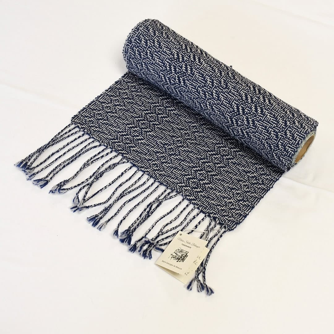 Foulard en laine mérinos , tissé par l’artisane Marie Stella Morin