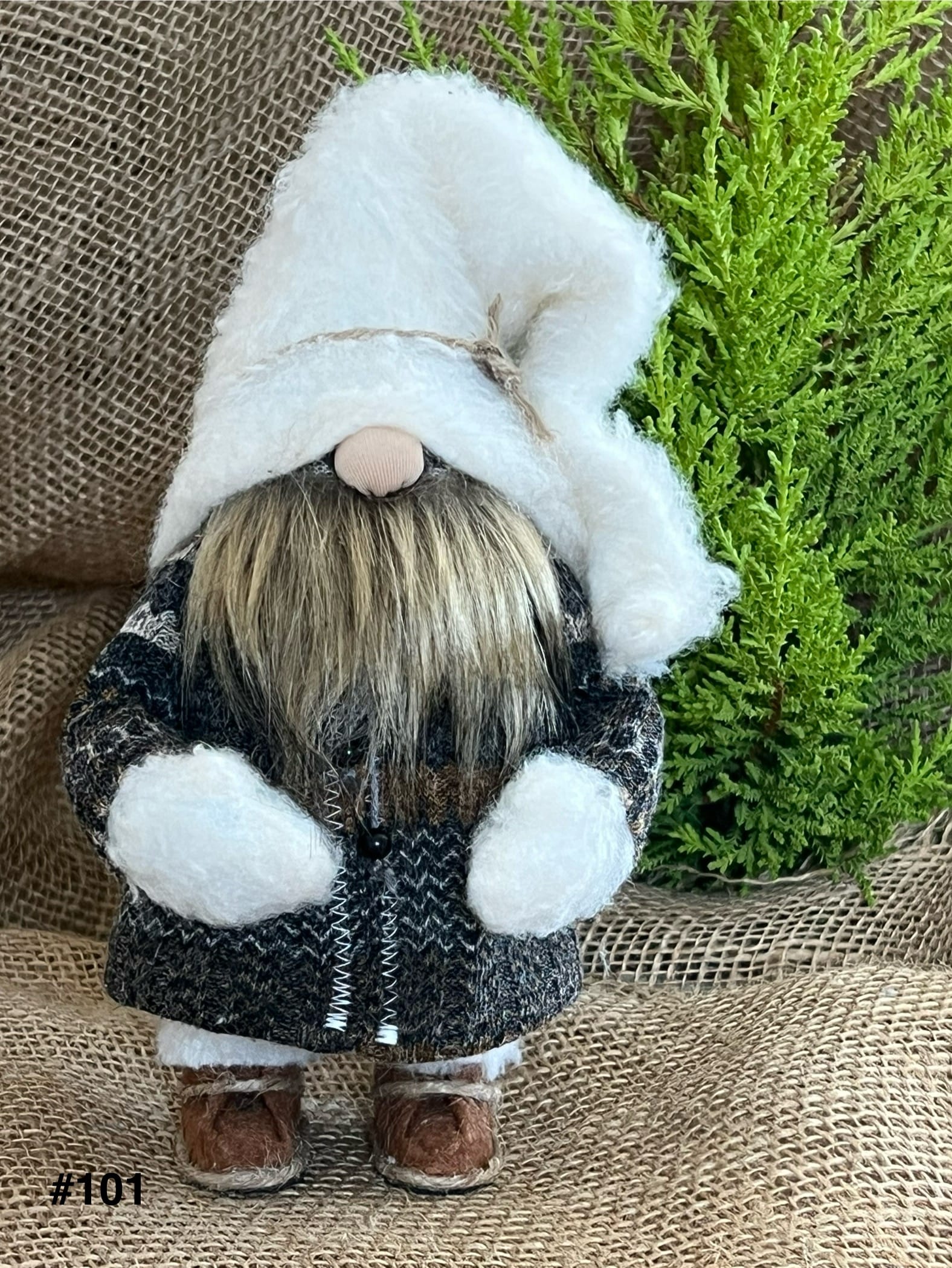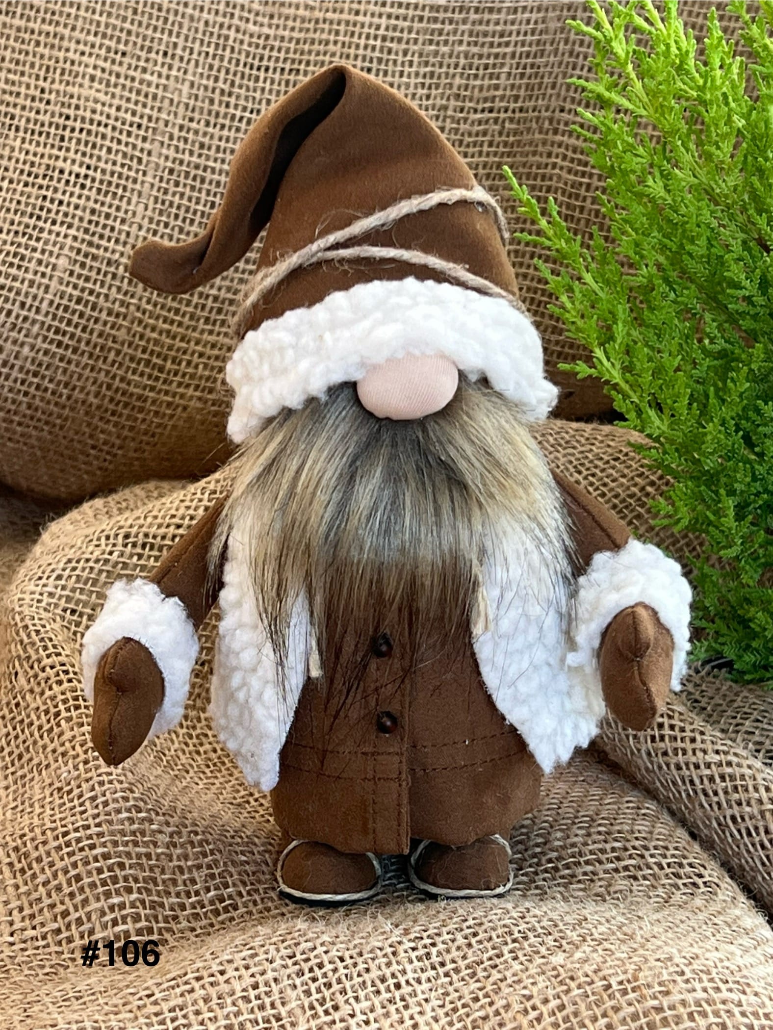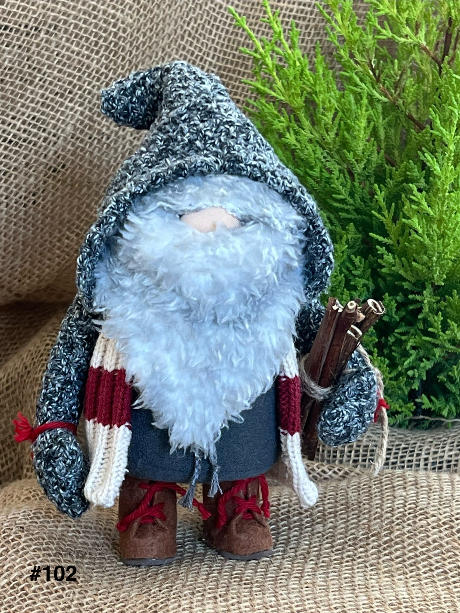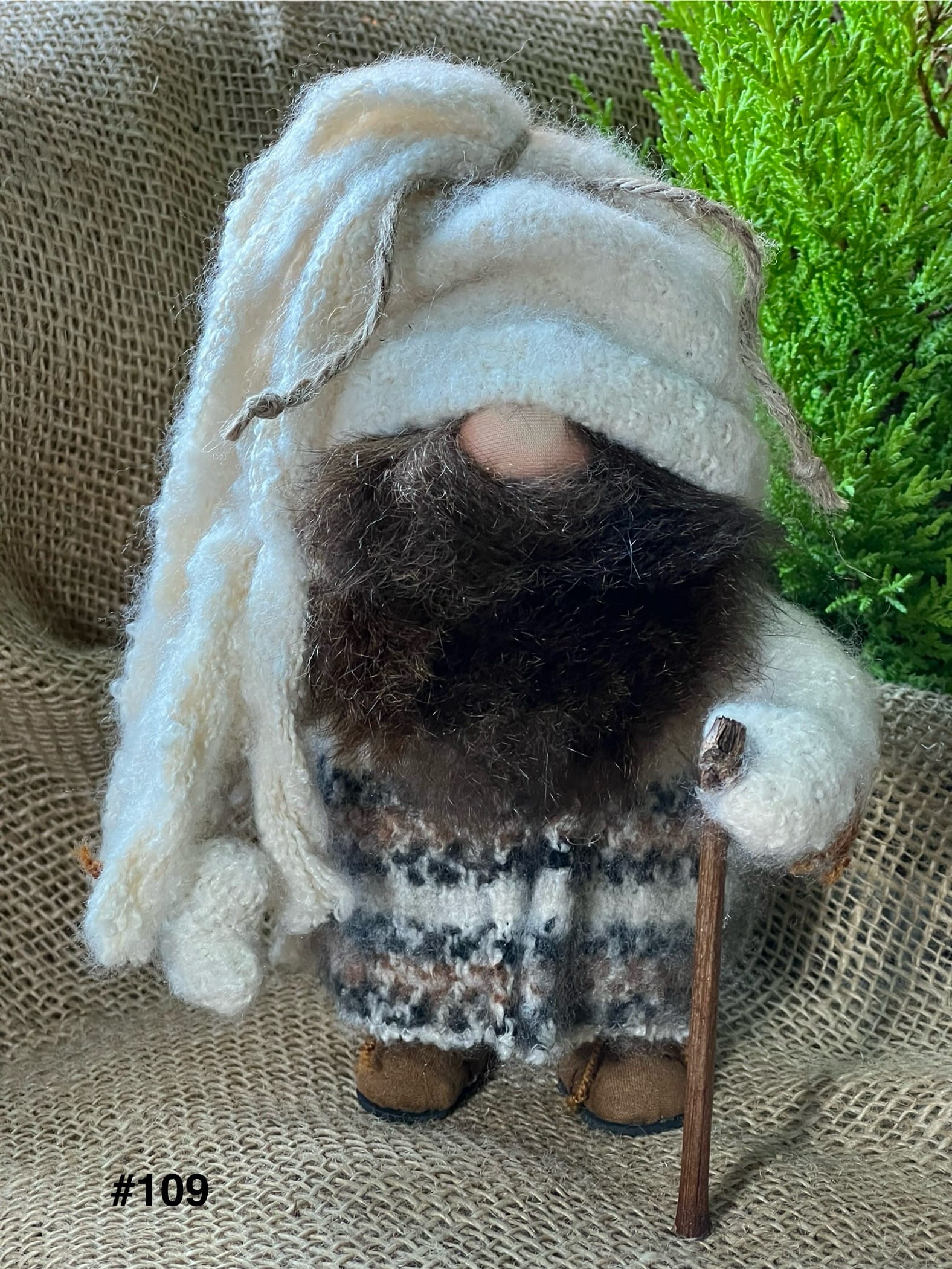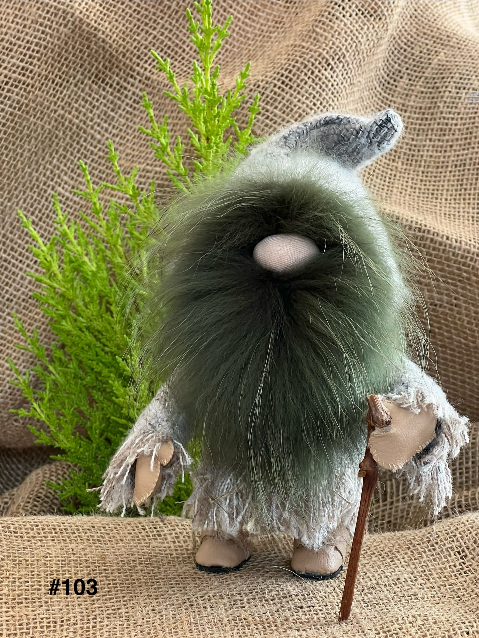 Petits personnages légendaires fabriqués avec divers tissus de récupération, laine, cuir, fourrure.
