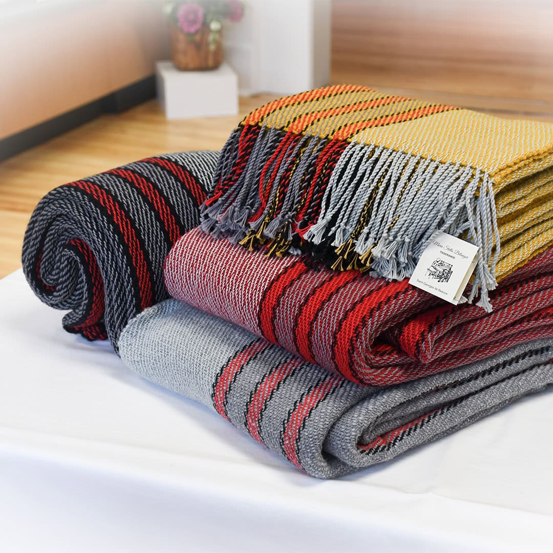 Grande jetée coton laine tissée par l’artisane Marie Stella Morin.