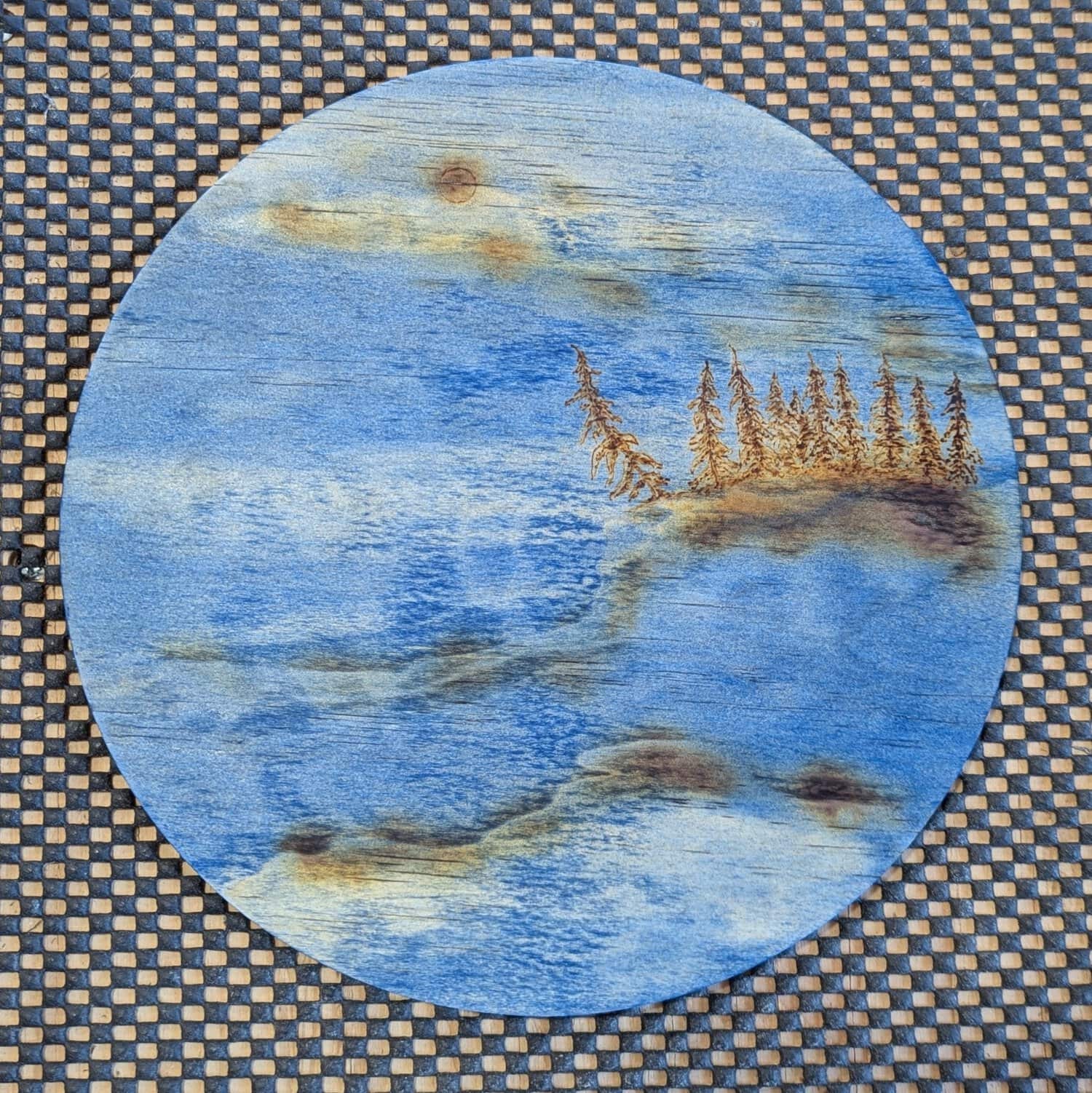 Arbres pyrogravés sur support en bois circulaire
