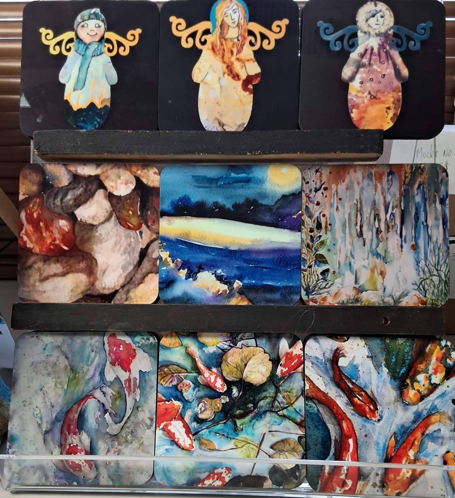 Sous-verre en acrylique avec ou sans liège à l’arrière. Fini vitré. Très résistant au froid et à la chaleur ainsi qu’aux égratignures. Plusieurs modèles disponibles non représentés sur le site. Reproduction des oeuvres de Louise Champagne.