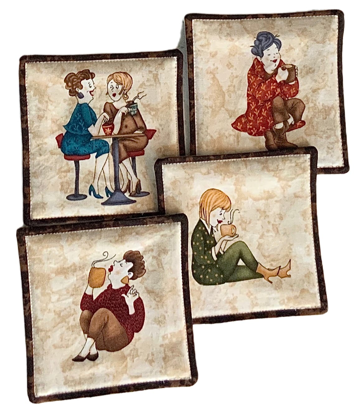 Mignons sous-verres avec motif de bonnes femmes qui boivent du café
