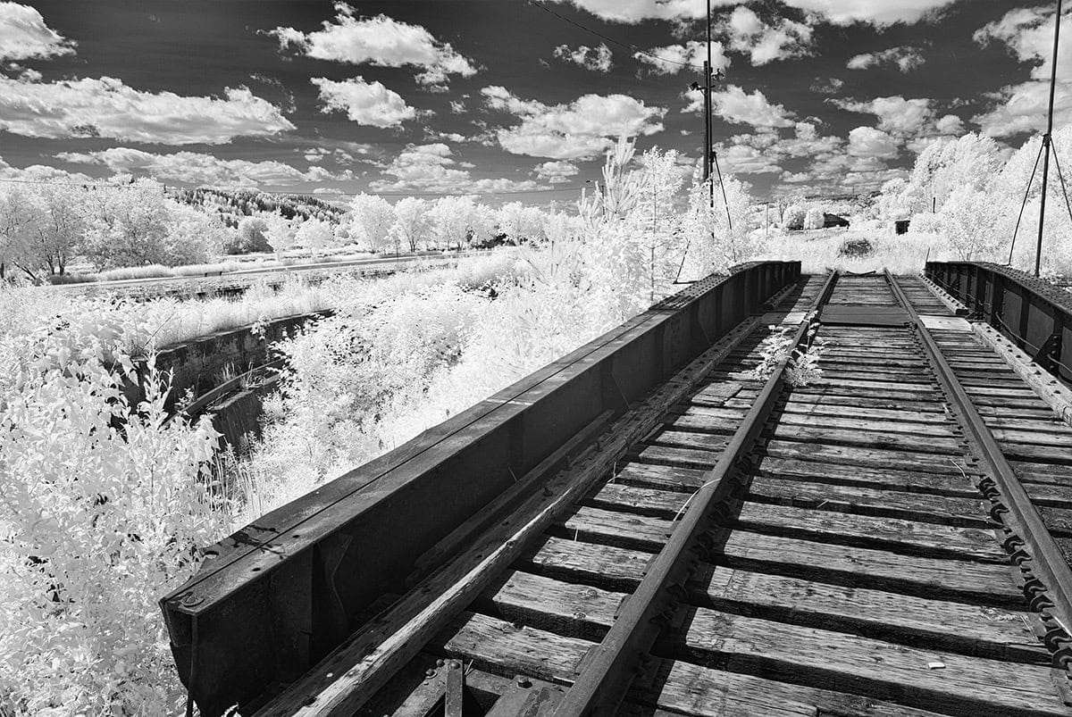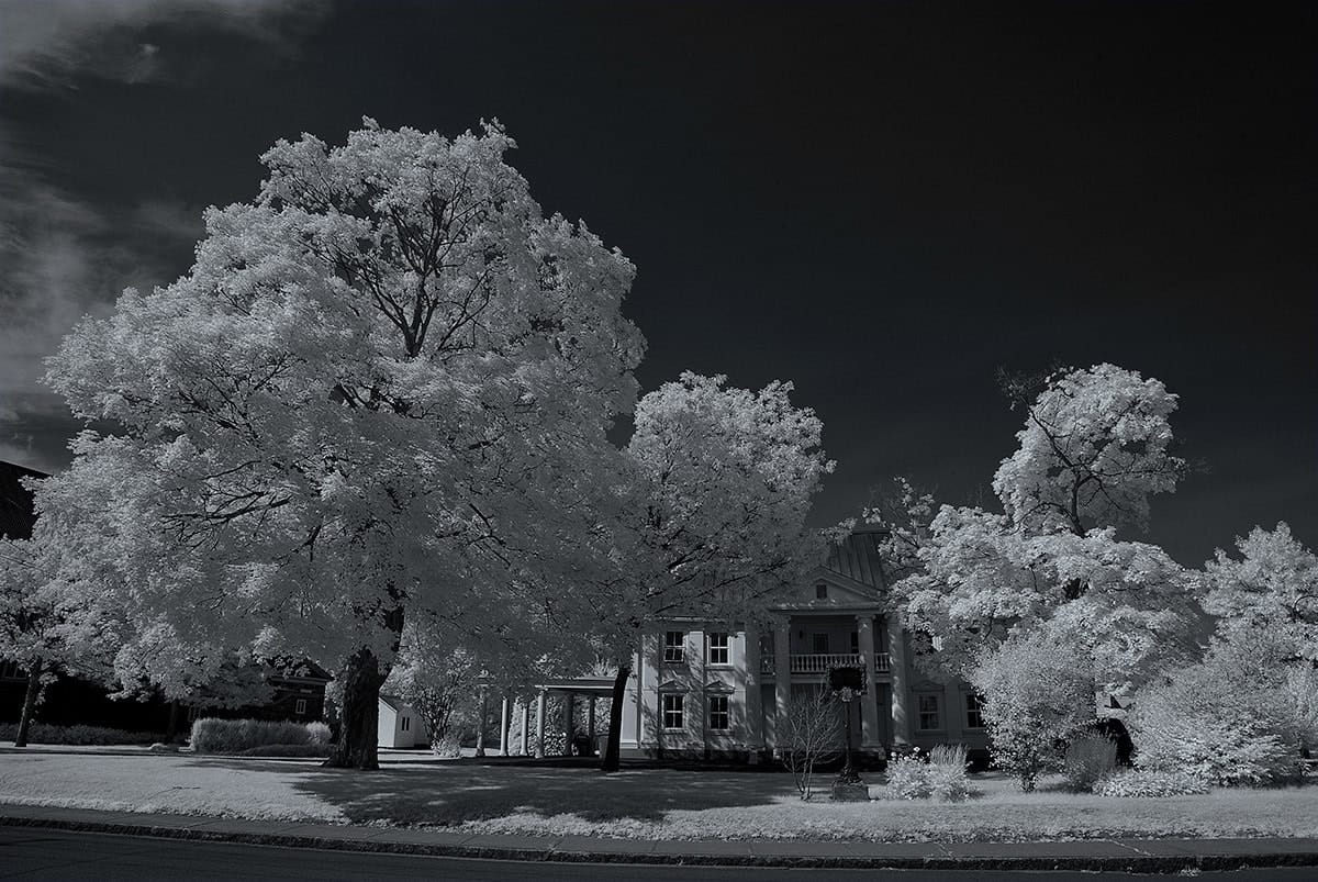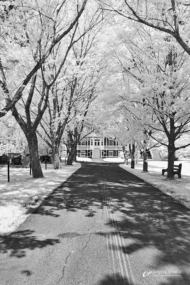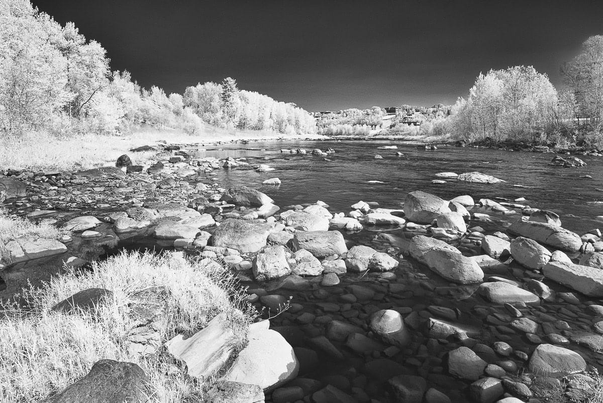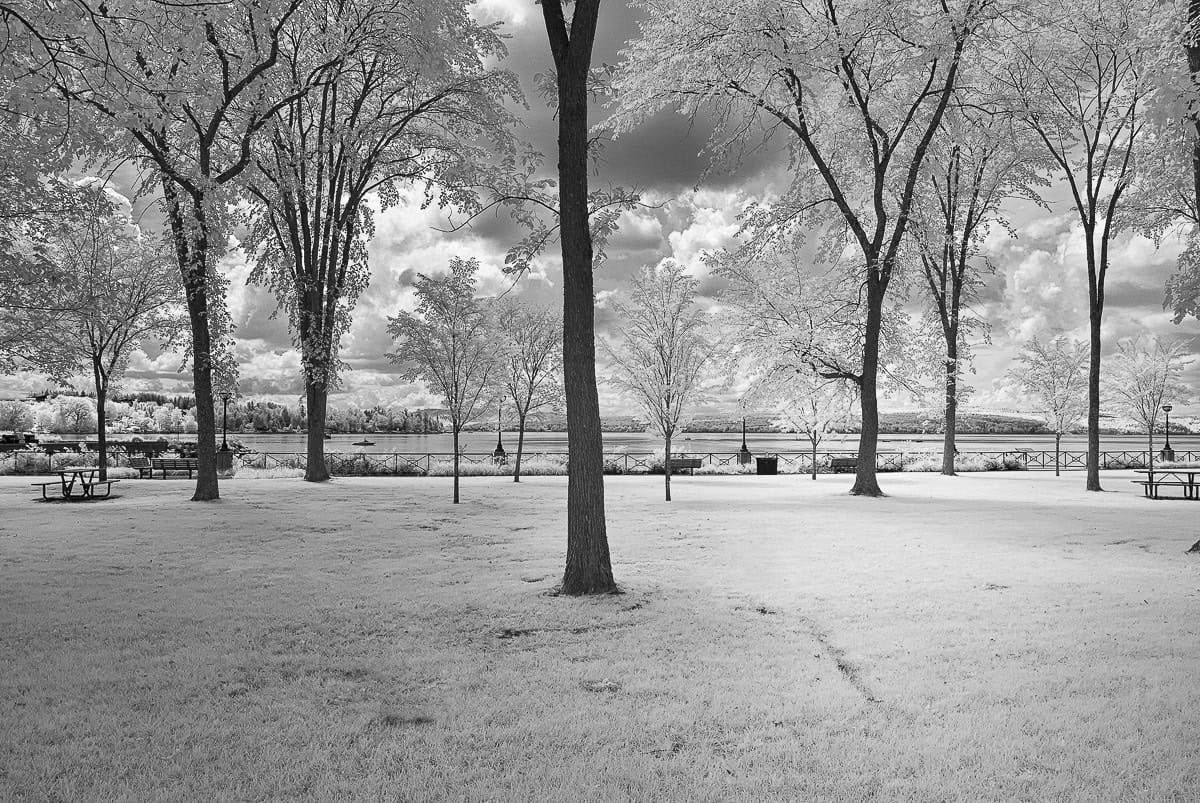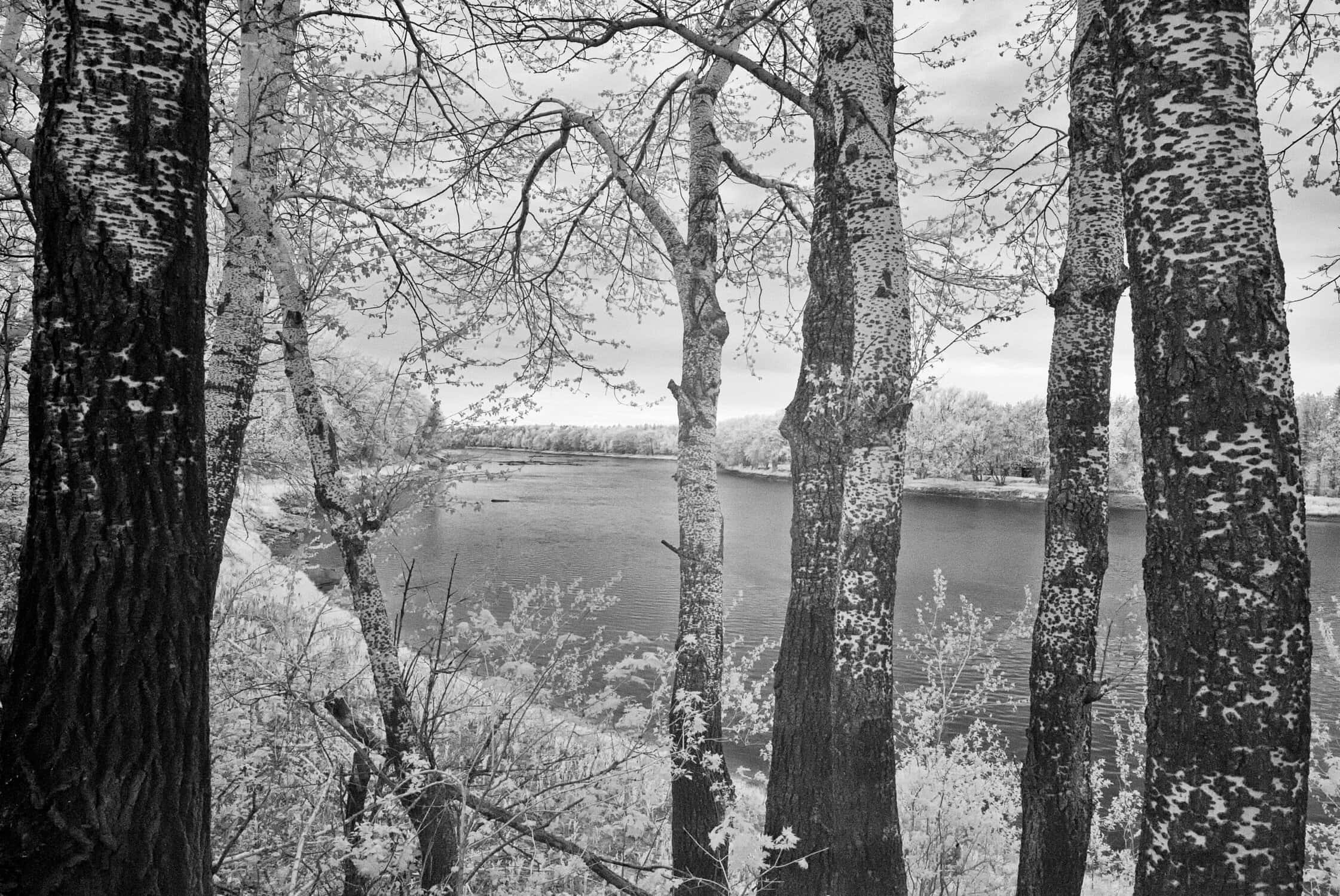 Tirage photo numérique prise en infrarouge. Série «J’ai rêvé une rivière» mettant en scène les paysages situés le long de la rivière Chaudière de Lac Mégantic à St-Romuald